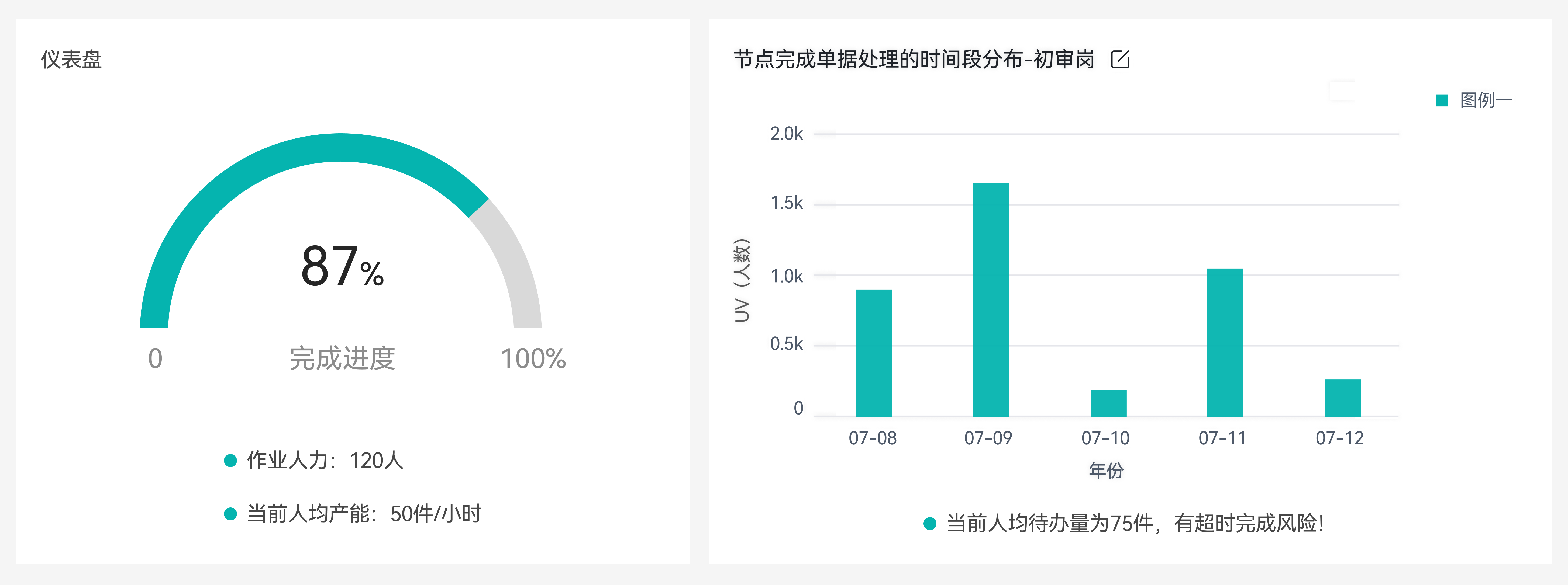 2、根據(jù)在線作業(yè)人力與平均處理耗時(shí),通過流程仿真模擬技術(shù),預(yù)測(cè)完成時(shí)間后自動(dòng)觸發(fā)超期預(yù)警,保證SLA達(dá)成率。